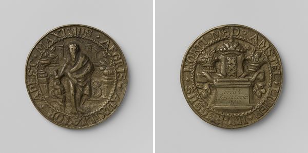 Editor: This is an intriguing metal relief, a portrait of "Keizer Karel V," created around 1550 by an anonymous artist. It feels almost like a coin, or perhaps a medallion. Given that the Rijksmuseum holds this object, what’s striking about it for you? Curator: The most fascinating thing is its materiality, isn’t it? This isn't painting or even large-scale sculpture; it's a meticulously crafted metal relief, a miniature world forged through labour. Consider the social context: who had the resources to commission such an object, and for what purpose? Was this piece a display of personal wealth or perhaps something used to create an image? Editor: I see what you mean. It feels like it’s beyond just simple art making, perhaps bordering more toward commodity and political authority? Curator: Exactly. Think about the labor involved. This wasn’t mass production; some artisan invested time and skill to translate the power of Charles V into metal. It prompts questions about the hierarchy of art and craft during the Renaissance and how those divisions played out in the workshops of the period. Metal-working as an industry offered new ways of understanding economic status at the time. What message would you say the artist sends to their audience? Editor: Perhaps a message about the accessibility of portraiture at that time, or an early commentary about material culture as it existed in the mid-16th century? Thanks to the analysis on labour and access, this makes me think about that. Curator: Precisely! By focusing on the materials and production, we've moved beyond mere aesthetics to consider this piece as a product of a complex web of social, economic, and even manufacturing forces. It becomes a portal into the lives of both patron and producer. Editor: Absolutely. I definitely gained an entirely new lens by looking closely at the material context here.