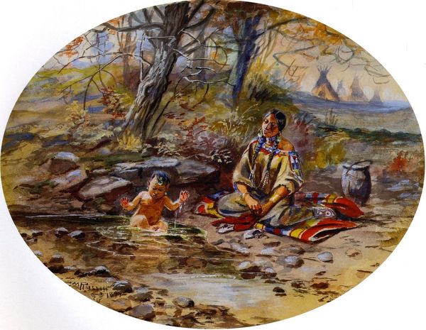 Curator: Here we see Nasreddine Dinet's oil painting titled "Young Boy with a Fennec," an excellent example of orientalist and academic art. Editor: The overwhelming impression is tenderness. A young boy cradling a Fennec fox, both seeming a little lost in their shared vulnerability. Curator: Dinet was deeply invested in representing North African life with empathy. He even converted to Islam and lived in Algeria for many years. Look at the care with which he captures the boy's features, and the equally detailed depiction of the Fennec's delicate form. The monochrome tones serve to enhance this contrast. Editor: It's precisely this gaze, the empathetic but still distanced view, that complicates things for me. Even with good intentions, an artist like Dinet participates in the power dynamics of representation. Who gets to tell whose story, and how? The fennec fox, small and fragile, and the young boy, perhaps embodying the stereotype of indigenous innocence. How much is our view shaped by these pre-existing narratives? Curator: These are valid concerns to consider, particularly regarding Orientalism's impact. But in considering symbolism, the boy might also represent youthful vigor and resourcefulness, a symbiotic connection to the desert itself, embodied by the Fennec. The animal might stand for adaptation, stealth, even wisdom beyond its size, qualities reflected in the boy. Editor: Perhaps. And yet I see a certain melancholy here. The muted colors, the boy's almost guarded expression, the wildness of the desert tamed, if only momentarily, within his grasp. What does it mean for the fox's destiny and the boy's? What freedoms do they possess, and what will their futures entail? Curator: Dinet, as an orientalist painter, sought to preserve what he believed was an authentic representation of Algerian life. We, generations later, are left to decipher that. What is preserved and what is irretrievably lost through cultural translation? Editor: I find myself questioning whether our contemporary readings perpetuate these ingrained systems. How do we see past the romanticized and, arguably, colonially tinged lens that informs our experience of this picture? How do we see them?