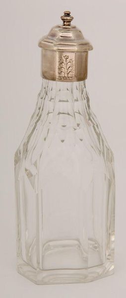 This clear glass bottle was made anonymously, and it is hard to say exactly when. But we can still learn a lot from it. Notice the fine spiral pattern within the glass. This wasn't applied to the surface, but is integral to the material, meaning that the bottle was likely made using a mold into which molten glass was blown. This was an important step in the industrialization of glassmaking. As you can imagine, this method allowed for much more efficient production than free-blowing, where the glassblower shapes each vessel by hand. The bottle’s simple, functional form reflects this shift towards mass manufacture. It makes you think about the sheer number of bottles that have been produced over the centuries. Though humble, this object offers a fascinating glimpse into the relationship between design, labor, and consumer culture.