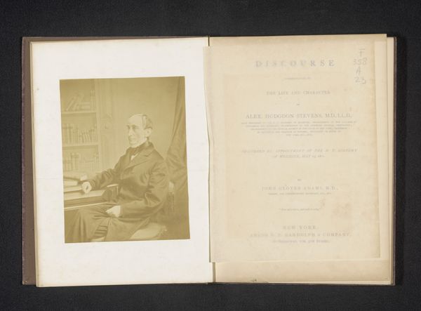 Here we see Herbert Rose Barraud's portrait of Sir William Jenner, likely crafted as a photographic print to be included in a book. Jenner was a physician to Queen Victoria, and a leader in the medical establishment. The portrait is part of a larger history of constructing and maintaining gendered power structures in professional and public life. Jenner’s severe gaze and formal attire represent an archetype of male authority. During this time, medicine was becoming increasingly professionalized, excluding women and solidifying a male-dominated hierarchy. The photograph's presence in a book allows us to consider how images circulated and reinforced ideas about class and professional identity. It makes me think about how medical knowledge and authority were disseminated. The image is both a personal memento and a public declaration of Jenner's status and achievements.