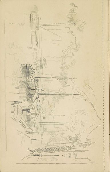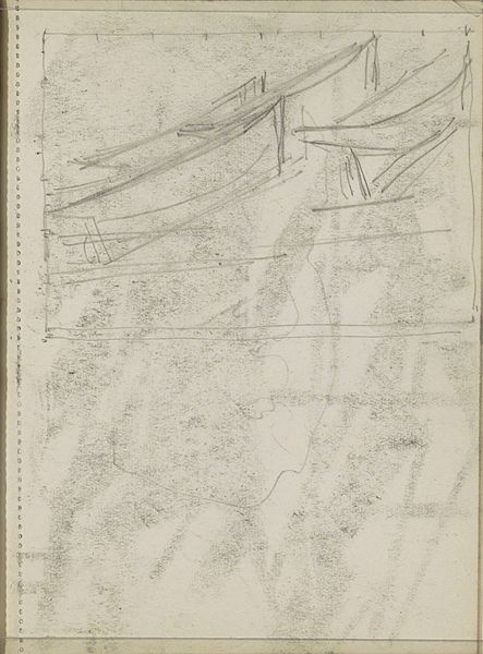 This chalk drawing is by Isaac Israels, a Dutch artist who lived from 1865 to 1934. Though undated, it resides in a sketchbook held by the Rijksmuseum. Israels was a contemporary of Vincent van Gogh, and shared with him an interest in portraying modern urban life, from the working class to the fashionably dressed. In this sketch, we see a rapid study, perhaps of figures in a public space. The immediacy of the chalk medium lends itself to capturing fleeting moments, reflecting the changing rhythms of the city. Israels belonged to a generation of artists who questioned the formal academic traditions, preferring instead to engage with the realities of everyday life. The sketchbook, a portable and personal space for artistic exploration, allowed artists to break free from the constraints of the studio and engage directly with the world around them. To further understand Israels' artistic choices, one might delve into archives and exhibition records. By considering the social context in which the artwork was made, we gain insight into its meaning and significance.