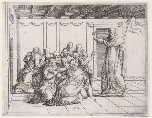 Augustin Hirschvogel created this engraving, Judas Receiving the Wages of His Treason, during the 16th century. It depicts a key moment from the New Testament. In this scene, Judas Iscariot is portrayed accepting silver coins for his betrayal of Jesus. The historical context of this piece reflects the religious and social tensions of Reformation-era Europe. The story of Judas has often been used to explore themes of betrayal, guilt, and redemption. The emotional weight of this scene comes from understanding Judas's internal conflict. Hirschvogel skillfully captures the moment of transaction, highlighting the tension between Judas and the group of men handing over the money. The image invites us to reflect on the complexities of human behavior. How does the pursuit of wealth and power affect individual choices?