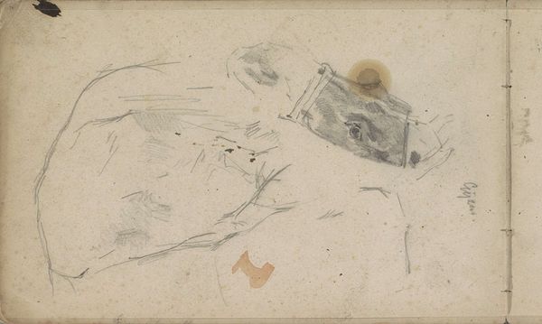 Curator: I see an intriguing ethereality, a ghostlike presence taking shape. Editor: That’s quite apt. What we have here is a piece called "Abklatsch van de krijttekening op blad 9 verso," created by Johanna van de Kamer sometime between 1890 and 1922. It's rendered in pencil and graphite on paper. Curator: The softness of the graphite gives it this fleeting quality, as if it might fade away before our eyes. It's hard to discern the subject—a figure perhaps? And the texture! It’s almost velvety. I wonder what significance the artist tried to project with this work. Editor: It appears to be a rubbing or transfer—’Abklatsch’ in German. These techniques often result in a mirror image. Rubbings can sometimes possess symbolic properties, used to record and transfer sacred or important images. Curator: A transfer implies a preservation of something already existing, not necessarily a creation, it adds layers to interpretation, which might show more than one significance in relation to cultural preservation practices, something to transmit through symbols and meaning. It can create interesting parallels and differences through this technique. Editor: It creates an interesting tension, this sense of copying and the spontaneous marks. Looking at the tonal values and mark-making, I am intrigued by the limited value range. This restrained palette emphasizes texture and edge. Notice how areas dissolve into abstraction? What impact do you think this has on the observer? Curator: I think the dissolving creates an intimacy with an emotional experience of remembering, or the suggestion of looking at something half forgotten. Memory itself functions like this—fragments, echoes of what once was. Perhaps this work functions as a memento, a quiet meditation. Editor: I agree. It makes us consider what we value preserving through this reproduction, and the ways in which its qualities both communicate with the present, but reflect something further. Curator: Absolutely. What started as an elusive, undefined form becomes quite clear that contains far more cultural significance.