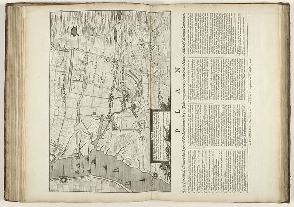 Curator: This rather intricate engraving is entitled "Spaanse Furie: plattegrond van de stad, 1576", dating from around 1576 to 1579, attributed to Frans Hogenberg. Editor: There's something quite unsettling about the tightly packed structures, this visual density suggests disorder or unrest. The city almost seems to writhe on the page. Curator: Indeed. What we're seeing here is no mere topographical map, but rather a piece of historical reportage. The "Spanish Fury" refers to the sack of Antwerp by Spanish troops in 1576. This print offers a bird's-eye perspective on a moment of intense political and social upheaval during the Dutch Revolt. Editor: So, this wasn't simply about documenting the layout of Antwerp; it’s an account of state-sponsored violence made manifest through its very representation? It’s fascinating how the artist manages to evoke such palpable anxiety through such ordered lines. The texture of trauma made graphical. Curator: Precisely. Note the sharp delineations between the gridded city and the harbour filled with ships; the contrast underscores Antwerp’s vital role as a port city, but also its vulnerability to attack and siege. The very detail of the city speaks to Hogenberg's technical skill, rendering specific sites while the textual elements name actors involved and consequences. Editor: Do you think this level of detailing elevates the documentary aspect over artistic interpretation or emotional expression? Curator: I'd argue it’s a strategic choice. Hogenberg aimed for an apparent objectivity, lending greater authority to his depiction of atrocities that befell the city and fueled anti-Spanish sentiment. Editor: I suppose there’s a kind of eloquence in the raw, unadorned truth, making the city itself the central motif in conveying collective agony. Seeing such fine lines, yet knowing it captures a moment of brutality, leaves a lasting imprint. Curator: The way Hogenberg intertwines factual detail with an inherent commentary is both impactful and instructive for understanding a dark chapter in European history. Editor: It leaves one contemplating the burden of cities, always existing as targets, enduring witness, and ultimately symbols of human endurance.