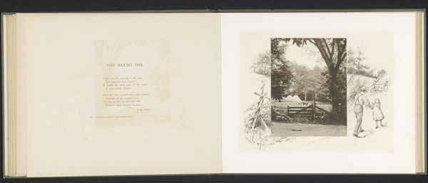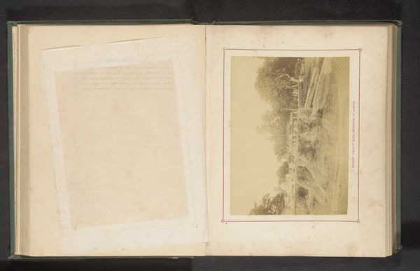 Curator: Before us is a work by James Valentine entitled "Gezicht op Balcay Park," dating to before 1877. It resides here at the Rijksmuseum, offering a glimpse into a bygone era. Editor: It has a decidedly sepia tone, almost monochromatic, and evokes a certain melancholic mood. The composition leads the eye into the depths of the park, but there is also a certain stillness in the scenery itself, almost like the artist was trying to show how controlled the public spaces could be at the time. Curator: Indeed, let's consider the materiality of the piece. We know it's ink printed on what appears to be aged, toned paper. Valentine's process involves an early form of photographic printing and potentially using some sort of homemade paper too to match his desired aesthetic. Editor: From a formalist perspective, look at how the structure is arranged! The rigid line of the fence and then the careful management of the gardens contrast rather significantly with the uncontrolled growth that lies only slightly past this. There’s an artificial imposition there that Valentine captures masterfully. Curator: Agreed. Valentine wasn't simply documenting a scene; he was participating in the visual construction of this place, an era’s understanding of nature and leisure. It speaks volumes about social priorities, of ordering even something as organic as public enjoyment. Editor: And the repetition of shapes reinforces this point, from the spaced posts of the fences, to the even spread of trees in the small park, lending it almost mathematical rhythm. You almost get the sense there are multiple vanishing points involved, which in turn speaks volumes of the artist's desire to make it look just so, not necessarily accurate. Curator: I would just point to the very *act* of viewing a place that most of our users know, here recontextualized within the structure of the park in a photograph. You see what the society valued as worthwhile, and this carries beyond just Valentine’s decision of what to depict. It becomes about an ethos reflected. Editor: It is amazing how a fairly simply composed image, relying on monochromatic values can nevertheless tell a complex story through a carefully organised visual landscape. Curator: Absolutely. Understanding the socio-historical backdrop interwoven with the medium makes appreciating a piece such as Valentine’s "Gezicht op Balcay Park" all the richer. Editor: Precisely, and analyzing the visual syntax reveals that period’s cultural priorities too.