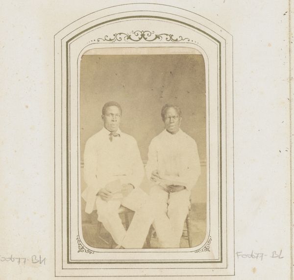 Woodbury & Page made this photograph of an old Indonesian man and a boy, likely in the late 19th century, using the albumen print process. This image is more than just a portrait; it’s a window into the complex social dynamics of colonial Indonesia. The older man is formally dressed in western clothing while the boy sits on the floor in traditional clothes. This contrast highlights the cultural tensions of the time, between colonial power and local traditions. The man's upright posture and cane could symbolize authority and status, possibly achieved through alignment with colonial structures. Photographs like these were often commissioned by Europeans, reflecting their fascination with and control over colonized populations. Understanding the institutional history of photography, and the roles of studios like Woodbury & Page, helps us decode these images. We need to consider how Dutch colonial policies influenced social class and cultural identity in Indonesia. Further research into colonial archives, personal accounts, and studies of visual culture would deepen our understanding of this photograph. By exploring the social conditions of its making, we can better interpret its meanings and implications.