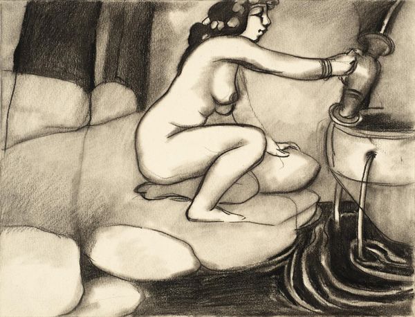 Peter Lipman-Wulf made this print, Joseph and His Brothers IX, using a pinkish-red ink to depict a biblical scene. There's an overall dreamy, almost hazy, quality. It's all about the line work which feels very immediate, like the artist worked directly onto the plate with a kind of urgency. The color gives it a sensual vibe, right? Look at the way the figures are intertwined; it's almost hard to tell where one ends and the other begins. I'm drawn to the hands, these sort of ambiguous gestures that could be interpreted in so many ways. Maybe they're pushing away, or reaching out, or perhaps even just holding on. Wulf’s approach to printmaking reminds me of someone like Max Beckmann, who also used printmaking to explore psychological and emotional themes. Ultimately, this piece resists easy answers and encourages us to linger with the uncertainty and complexity of human relationships.