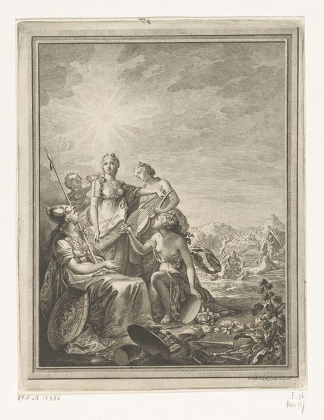 This is Louis Desplaces's "Annunciation", a print created sometime in the late 17th or early 18th century. The process of printmaking, specifically engraving, is crucial to understanding its meaning. The image wouldn't exist without a highly skilled artisan carefully cutting lines into a metal plate, inking it, and then transferring that image onto paper. The fineness of the lines and tonal gradations speak to Desplaces’ mastery. Each impression pulled from the plate would have been identical, allowing for mass production and dissemination of this religious scene. Consider the labor involved: from the initial concept to the final print, numerous hands were likely involved. The work embodies the intersection of artistic skill, technical expertise, and the economics of image reproduction. It’s a potent reminder that even seemingly straightforward images are the product of complex social and material processes. By recognizing the means of production, we move beyond mere appreciation of the image, and begin to understand the world in which it was made and circulated.