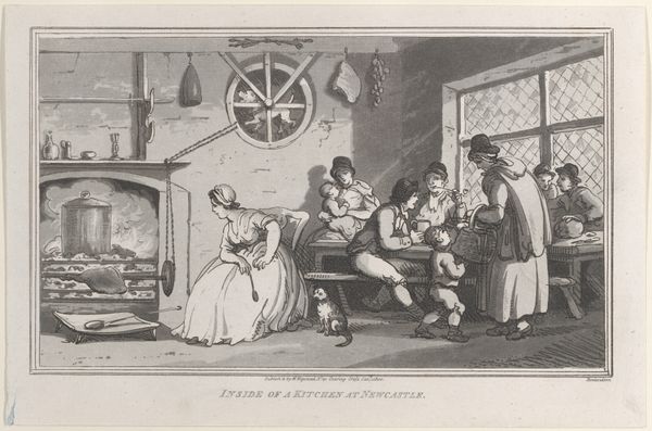 Curator: This print, entitled "Fall Games -- The Apple Bee," dates back to 1859. Winslow Homer created this piece using wood engraving. We find it in the Minneapolis Institute of Art. The process and materials speak volumes about how art disseminated through popular culture at the time. What strikes you about it initially? Editor: It’s buzzing with… well, with an apple bee, I suppose! There’s so much life crammed into this domestic space. It feels chaotic and warm all at once, a true hodgepodge of social interaction. Almost dreamlike! Curator: Indeed. The very nature of wood engraving allowed for mass production and distribution in publications like Harper's Weekly. Homer skillfully depicts this community gathering, which, during this era, would involve collective work centered on harvesting apples, with social elements intertwined, such as courting games. The material, cheap print, became accessible and spread nationwide through periodicals. Editor: Exactly. All these apple-bobbing rituals! Look at that woman trying to peel the apple in one go; apparently, you throw it, and it lands in the shape of your future lover's initial! Homer captures this beautiful and ridiculous energy that defines young love in a way only wood engraving could capture: economical and widespread! The detail despite its simplicity. The coziness...the romance of autumn's transition and festivities with such raw energy. Curator: Right! These gatherings created social bonds essential in rural communities, and Homer depicts these in a way where work becomes celebration. One wonders, who was it serving—the elite art collectors or a mass public? Editor: I wonder that, too. Though some faces and situations do suggest both optimism and a certain melancholic introspection...perhaps the awareness of coming cold. Anyway, this simple piece, crafted from such unassuming materials, leaves me strangely hopeful. Curator: A humble piece illustrating collective traditions while engaging with industrial manufacturing, showing an essential record for historians. It speaks to a crucial chapter in the narrative of American social bonds in its material execution as much as its content. Editor: Exactly. An echo of community reverberates through time... and onto cheap printed sheets! Beautiful.