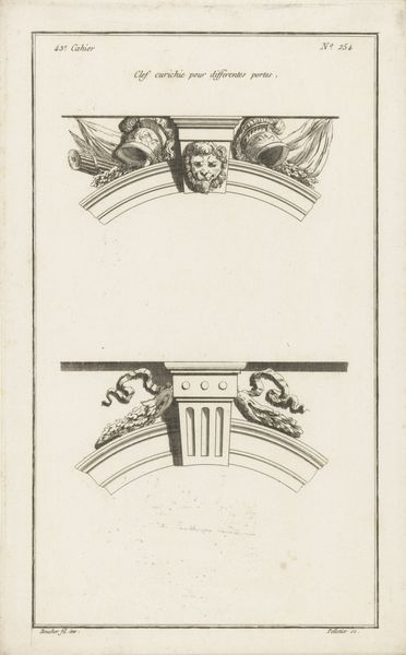 This is "Sluitstenen met schelpmotief en masker," a drawing by Jean Pelletier, created in the 18th century. During this time, Europe was still deeply entrenched in patriarchal structures that significantly influenced artistic representation. Pelletier’s drawing depicts keystones with shell motifs and masks, elements often used in architectural designs to symbolize balance and support. The mask, in particular, presents a fascinating intersection of identity and representation. Masks have historically been used across cultures to conceal, transform, or embody different aspects of identity. In this drawing, the mask-like face may reflect the limited roles and expectations imposed on individuals, particularly women, during the 18th century. The drawing invites us to consider how identities are constructed, performed, and sometimes concealed behind societal expectations. It also reveals that artistic creations were often influenced by the social norms and power dynamics of their time.