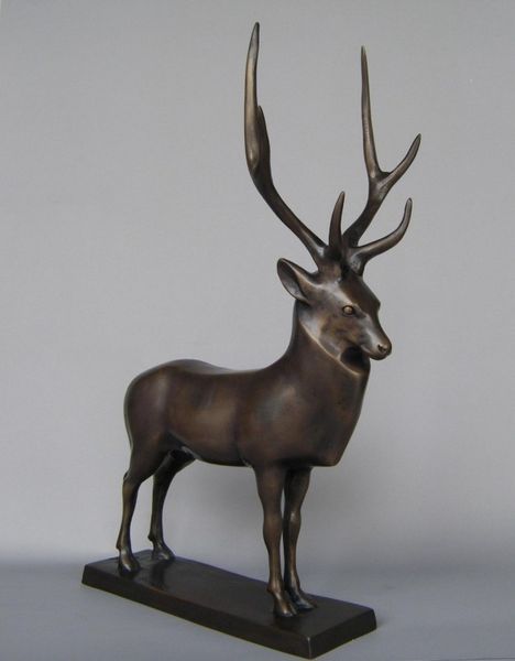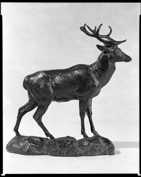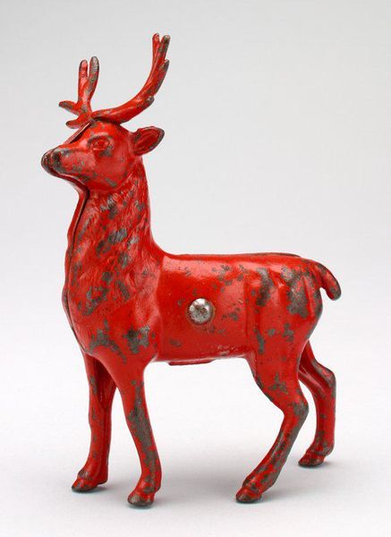 This is a salt-glazed stoneware Stag, made by Ralph Wood the Younger in 18th-century England. During this period, the English countryside was being transformed by wealthy landowners who enclosed common lands and created vast, manicured estates. The deer, a symbol of aristocratic privilege, became a recurring motif in art and design. Here, Wood's choice of stoneware speaks to the era's fascination with nature and the rural idyll. The stag, with its alert posture, embodies a sense of regal watchfulness. Yet, its stylized form and decorative glaze also suggest a degree of domestication, reflecting the complex relationship between humans and the natural world during this time. Notice how the artist captures the animal's delicate features, while also emphasizing its strength and virility. This tension between vulnerability and power is central to our understanding of how animals were perceived – both as objects of beauty and symbols of status.