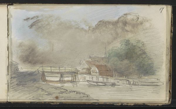 Curator: This tranquil winter scene, "Winterlandschaft mit Schlittschuhläufern auf einem Kanal," or "Winter Landscape with Skaters on a Canal," is attributed to Jan Hulswit and is located in the Städel Museum. It’s executed with watercolor and gouache, offering delicate depictions within a wide view. Editor: Brrr, just looking at it gives me a chill! But in a cozy way, like a memory of Christmases long past. There’s something almost monochromatic about the scene that soothes and centers me, a stillness that transcends just how busied it seems to be. Curator: Hulswit’s choice of muted tones does create a certain nostalgic feeling, but consider how that aligns with the symbolic weight of winter in art. We often see it representing reflection, dormancy, and the potential for renewal and in Hulswit’s imagery we may find a longing for stability that echoes beyond simple pastoral scenes. Editor: Perhaps, but isn't it just possible the guy loved a good skating scene? Look at the small details! A person is pulling another with a sled; it looks very cold. My eye is really drawn to the edges and how lightly Hulswit treats the figures; they are only just rendered into being from out of the air, just to skate around a bit before fading back from whence they came. It strikes me almost like memories forming on ice. Curator: It’s definitely fair to read this as an uncomplicated slice-of-life moment, as it would give voice to his experience! It certainly captures a moment, a vignette, like looking at a photograph of people long gone. And while there is clear technical prowess with perspective and form, I suspect a degree of cultural symbolism. Editor: Hmm. Fair point, there are indeed cultural echoes at play. Maybe it's less about a specific story and more about the shared experience of winter, those moments when nature forces a pause and brings people together. Curator: Exactly, and Hulswit seems to capture the duality of this frozen time. Editor: Makes you think, doesn’t it? Even something that seems simple can carry a whole world within it. Curator: Absolutely. Thanks for thawing out the possibilities within this painting! Editor: My pleasure. Now, if you don't mind, I’m going inside to make a hot cocoa and start feeling warmer...