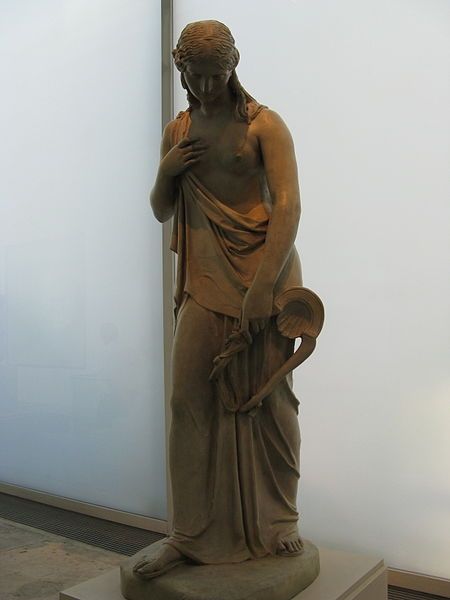 Editor: This is John Gibson’s marble sculpture, *Nymph Untying Her Sandal.* It’s captivating, isn't it? The texture and smoothness give her such a serene presence. How do you interpret this work? Curator: Indeed. Note how the simple act of untying a sandal transforms into a powerful symbol of vulnerability and transition. The figure's nudity isn't merely aesthetic; it echoes classical ideals, suggesting innocence and purity. Think about the sandal itself - a barrier, an adornment, now being removed. What do you suppose it signifies? Editor: Maybe shedding a past identity? Or perhaps preparing for something new, or hinting at a momentary, intimate act? Curator: Precisely. It could also symbolize a return to nature, or a release from societal constraints, a gesture towards freedom, really. And consider that slight, almost imperceptible turn of the head. Her gaze directed beyond herself. Where is she looking? What does she anticipate? These details accumulate meaning. Editor: So, every aspect carries weight, creating a richer, layered reading? I hadn’t considered the psychological implications behind each symbol. It gives so much to think about. Curator: Yes, these carefully constructed symbols provide pathways to access deeper cultural narratives. It reminds us that images aren’t just representations, they're encoded with layers of meaning. Editor: I now see this piece differently – it’s much more than just a beautiful sculpture, it is a repository of cultural meaning. Curator: And that’s how art endures – by carrying that memory and engaging us across generations.