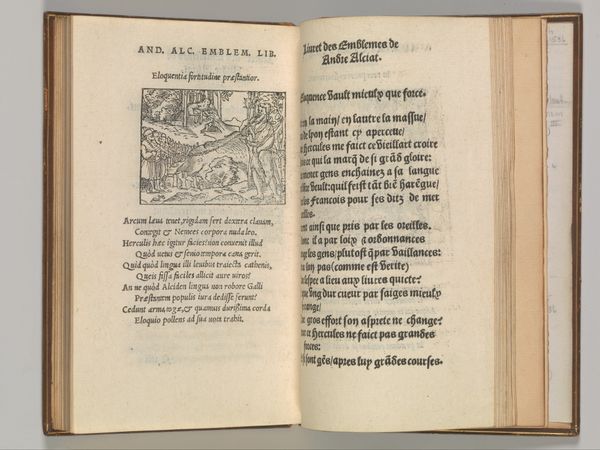 Curator: Looking at this fascinating Renaissance-era print now in the collection of the Metropolitan Museum of Art, New York. It's a woodcut illustration, part of Federico Frezzi’s *Quatriregio*, or *Four Realms*, dating from 1508. Editor: My immediate reaction is how intricate yet delicate the image is, especially given that it's a woodcut. It feels almost like a miniature tapestry with all its details. A sort of mythical forest. Curator: The choice of medium is quite relevant. Woodcut, while allowing for a wide distribution due to printing, inherently carries a sense of craft and traditional artistry. In terms of symbols, consider how the artist uses familiar classical imagery. Editor: The symbolism, though, feels... well, expected. We have Diana, nymphs, suggestions of classical stories—elements very much aligned with the visual language cultivated in the Italian Renaissance. Are there some less obvious psychological meanings? Curator: Absolutely, I think there's a rich undercurrent to explore here. Take the presence of Diana in a seemingly pure landscape setting, this relates to ideas of a primal connection between humans and nature but can be read, also, through the psychological themes of freedom and wildness. Diana could mean that a state of nature is desired, outside of all that order displayed by the Renaissance at the time, if we accept those conventions in art, in dress. Editor: So you're suggesting a dialogue between a yearning for something outside those structures, a desire for freedom, juxtaposed with those very conventional forms? The woodcut style itself becomes symbolic, almost like a framework—literally— containing this potential rebellion. Curator: Precisely, it shows us a society negotiating its values through art, making explicit reference to its classical inheritance, and its emerging needs. The inclusion of text with image allows for multiple readings for a public well versed in those references. Editor: And, by analyzing the choice of figuration we understand those narratives that reflect collective cultural beliefs and political agendas. It reminds us that visual stories are always constructed in their context. Curator: Indeed, the image operates not in isolation but as part of an exchange, culturally and politically. We can study how institutions then—and museums now—are vital actors in defining such stories. Editor: Yes. Exploring images like *Quatriregio*, opens paths toward a nuanced dialogue with our historical perspectives and what our idea of beauty is. Curator: Ultimately, engaging with these detailed woodcuts lets us decipher how past societies made sense of their ever-changing landscapes of both thought and place.