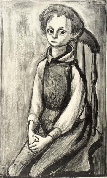 Editor: Here we have Bela Czobel's "Czobel Lappang...", rendered in charcoal and graphite. The muted tones and hazy composition give it an almost dreamlike, melancholic feel, don't you think? What strikes you when you look at it? Curator: That's a beautiful observation. The hazy composition absolutely sings. For me, this piece feels deeply personal. It’s like Czobel is trying to capture not just a likeness, but a memory, an emotion clinging to the surface of the paper. Notice the figure's intense, almost unsettling gaze. Where do you think she’s looking? Perhaps she, too, is remembering. It gives me pause… almost makes me a little homesick, if I’m honest! Editor: Homesick? That’s interesting. I was focused on the toys, but now I see the expression you mean. It's piercing. Curator: Yes! And that raw, expressive quality pulls us into the artist's inner world. The subject looks… lost? Or perhaps simply reflective, as we all can be in that liminal space between waking and dreaming? The sketchy quality amplifies the emotional intensity and ambiguity, which seems quite deliberate. Almost expressionistic. Editor: So you think the medium itself enhances that dreamlike, ephemeral quality? Curator: Precisely! And in that way, it serves the themes wonderfully. We can practically feel him coaxing something new and insightful into existence through graphite and charcoal. We aren't just spectators but active co-creators of this emotionally wrought experience. Editor: I hadn’t thought of it that way. I guess I saw it as a simple portrait, but now I appreciate the depth of feeling. Curator: See? Every viewing reveals new possibilities! The gift of art is in what you bring to it. What you feel.