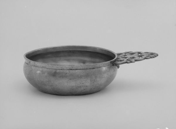Curator: Allow me to introduce you to an 18th-century teabowl by Nonomura Ninsei, currently residing at the Metropolitan Museum of Art. This exquisite example of Asian art is rendered in ceramic. Editor: Immediately striking is its austerity. The deep, monochromatic glaze is interrupted only by a delicate, meandering white band. There's a certain Wabi-sabi aesthetic at play. Curator: Indeed. Ninsei's work, particularly his teabowls, often showcases a profound appreciation for simplicity and imperfection, reflecting the Zen Buddhist principles embraced in the tea ceremony. The glaze itself offers a palpable textural interest; its semiotic intent perhaps evokes earthy rawness. Editor: I’d wager its value is amplified by that austerity and the social weight that Asian art bears historically and now. Did its intended use, the tea ceremony, for instance, influence the overall aesthetic and its perceived social purpose? Curator: Undeniably. The tea ceremony itself is steeped in rituals designed to foster harmony, respect, and purity, which this teabowl so poignantly mirrors. This artwork also serves as a powerful tool for the dissemination of these values through art patronage. Editor: It's tempting to see the contrast of white against that deep background as almost… combative, disrupting, rather than unifying. Is there discourse about that tension in academic circles? Curator: There's compelling dialogue regarding the role of "discord" in artistic expression within similar periods. A tension, perhaps not combative, but dynamic; like the Yin and Yang forces. Such dialectics invite close reading of how societal tensions were artistically codified. Editor: In that case, perhaps this small teabowl encapsulates a complex, coded relationship between art, socio-cultural values, and… well, something utterly and unquantifiably human. Curator: Yes, this highlights precisely the enduring relevance of an 18th-century ceramic vessel. Its appeal, undoubtedly multifaceted, stimulates discussions across aesthetic, material and philosophical levels, a confluence of cultural markers, to provide this artwork an enduring position in modern discourse.
