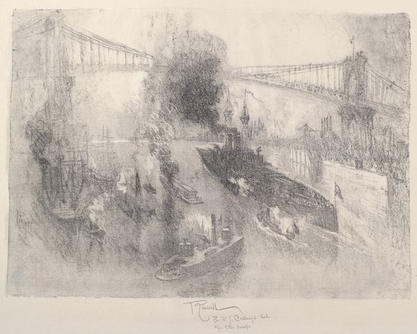 This print, Brooklyn Bridge Enters Manhattan, was made by Arnold R. Southwell sometime in the middle of the 20th century. The first thing you notice is the marks, thousands of tiny, rapid marks that almost feel like they vibrate off the page. Look closely at how they build up the image, creating this incredible sense of light and shadow. The texture created is amazing. There is a softness to the image, like the scene is covered in a layer of mist. The lines aren't precise, but somehow it all comes together, conjuring the immensity and scale of the bridge, and the city it leads to. Notice the bridge and how it dominates the image. The lines that make up the bridge are darker and more defined, but there is a looseness about the buildings. It makes me think of Whistler, with his atmospheric, tonal etchings of the Thames. Both artists capture something fleeting, a feeling more than a literal depiction. In this print, Southwell isn't just showing us a bridge, it's a mood, a moment in time, full of movement. Art isn’t about being fixed; it’s a conversation, a back-and-forth across time.