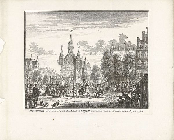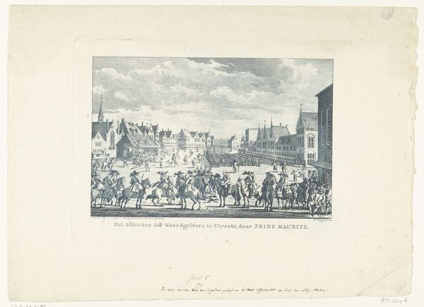 Jan Gerritsz. Visser created this print in 1785 using etching techniques. The print depicts Willem V, saying goodbye after being relieved of his command in The Hague, reflecting a pivotal moment in Dutch history marked by political tensions between the Patriots and the Orangists. Visser captures the emotional weight of the scene, as Willem V departs amidst a crowd of onlookers. The departure is not just a personal farewell, but also a symbolic moment laden with issues of power, authority, and national identity. The print embodies the complexities of Dutch society, highlighting the tensions between tradition and progress. The artist invites us to contemplate the impact of political change on individual lives and the collective consciousness. The print serves as a poignant reminder of the human cost of political upheaval, capturing a moment of transition and uncertainty in Dutch history.