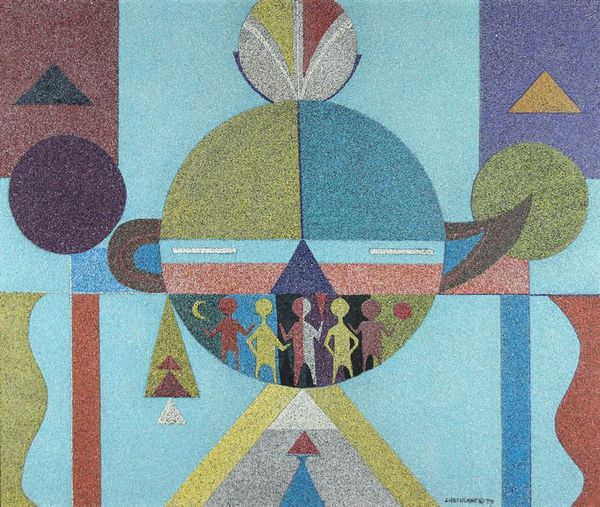 Omar Rayo made this painting, “Untitled (Mountains),” and in it, you can see a mix of flat shapes and textured surfaces. The colors are bold, almost like they're cut from construction paper, and the shapes lock together kind of like a puzzle. Looking closely, the texture gets pretty interesting. The gray parts, in particular, have this rough, scratchy quality, like he was really working the paint into the canvas. Then you've got these triangles with little hats, standing on top, each with its own vibe. The marks seem so simple, but they add up to this complex interplay of color and form, an idea of ‘mountains’ conjured out of pure design. It reminds me a bit of early Stuart Davis, but with a Latin American twist. Rayo isn't trying to fool us with realism; he's inviting us to play with shapes and ideas. It’s a conversation, and he’s asking us to join in.