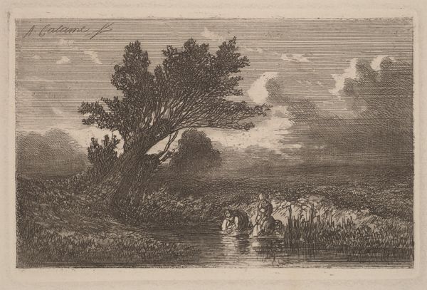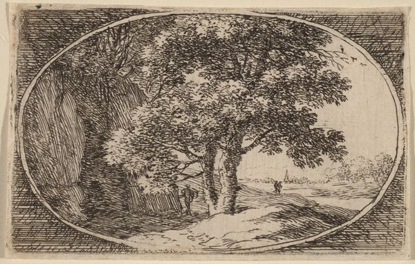 Herman van Swanevelt's etching, "The Rocks," presents us with a pastoral scene framed within an oval, evoking a sense of enclosed reflection. Dominating the composition are the rocks themselves, symbols of permanence and the sublime. Their rough, imposing forms have long captured the human imagination, signifying both refuge and danger. Note how the artist contrasts the rugged rocks with the serene body of water and distant hills, a juxtaposition that invites contemplation on the transient nature of life against the backdrop of enduring earth. This motif of the 'rock' echoes through art history, from the sacred stones of ancient rituals to the rocky landscapes favored by Renaissance masters seeking to imbue their works with a sense of timelessness. The enduring presence of rocks serves as a powerful reminder of the earth's ancient history and our own fleeting existence, engaging us on a profound, subconscious level. The rocks, silent witnesses to the passage of time, continue to resonate in our collective memory, reappearing in art across centuries, constantly evolving, yet retaining their primal power.