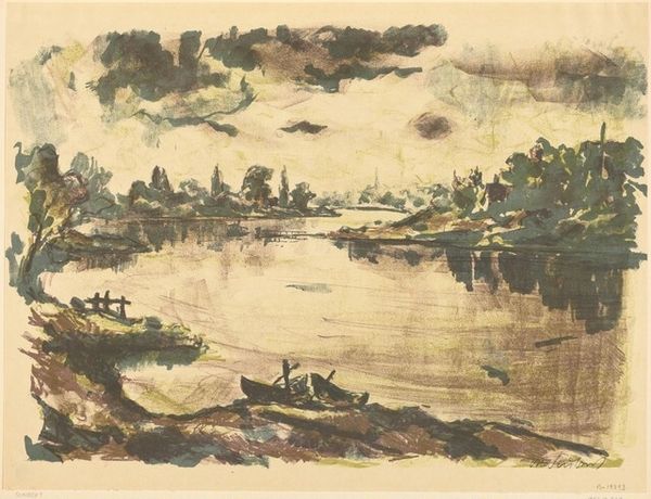 Muirhead Bone created this watercolor of bath houses near Saltsjobaden, Sweden. While the exact date is unknown, Bone lived through both World Wars. We might imagine Bone's interest in the bathing houses stemming from a desire to portray sites of leisure and health, a stark contrast to the grim realities of war. Bathing scenes throughout art history often become sites for exploring the nude body, class, and gender. However, here, the figures are small, at a distance. Instead, the architecture and landscape take precedence. This refrains from the traditional voyeuristic or idealized representations often associated with bath scenes. Bone's choice of watercolor gives the scene a soft, almost dreamlike quality. This invites us to consider the painting not just as a depiction of a place, but as an emotional experience, reflecting perhaps a longing for peace, or a gentle critique of leisure during times of conflict.