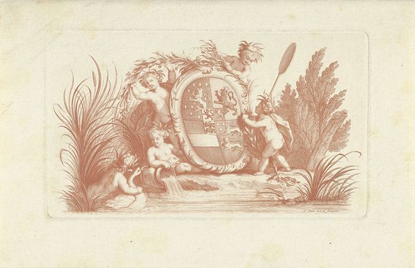 This heraldic print was made by Reinier Vinkeles. We don't have an exact date for the artwork but Vinkeles was active in the late 18th and early 19th century. The image is an engraving, which means it was made by carefully incising lines into a metal plate, inking the plate, and then using a press to transfer the image to paper. Engraving is a highly skilled process, demanding precise hand-eye coordination and years of training. The result is a crisp, clean image, ideally suited to reproducing intricate designs like this coat of arms. Consider the social context: heraldry was closely tied to aristocratic identity, signifying lineage and power. But engraving, as a reproducible medium, also made these symbols of authority more widely accessible. So, while the image speaks to a rigid social hierarchy, its very production hints at the emerging forces of mass communication. This tension between exclusivity and accessibility is crucial to understanding the print’s significance.