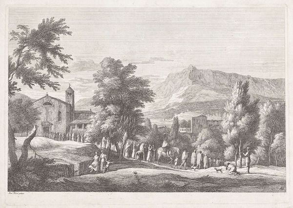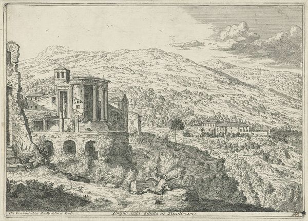 Editor: Here we have Giuseppe Vasi’s "Panorama van de stad Rome," an engraving from 1765. It's quite striking – the detail is incredible for the medium. The sheer scale of the cityscape seems to dwarf everything. What strikes you about it? Curator: What I see is an assertion of power and permanence, communicated through the symbols of Rome itself. Consider how Vasi uses perspective; he’s elevated the viewer, granting them a kind of dominion over the scene. St. Peter's Basilica dominates, of course. What does its placement and size evoke for you? Editor: Well, its prominence definitely screams authority. I guess it's almost propaganda, showcasing the might of the Church? Curator: Indeed! It's about visual legacy and continuity. The Church positioned as the inheritor of Rome's imperial glory. But look beyond just the basilica itself, the composition balances classical structures with natural elements, reflecting a cultural dialogue. Can you see the ways nature is incorporated? Editor: The tree in the foreground is very prominent. It's almost as if the city emerges *from* nature, like it’s part of a larger organic system. Curator: Precisely! That merging emphasizes an unbroken connection to the past. Nature doesn’t diminish Rome’s achievements but rather contextualizes them as something enduring and fundamental, not merely built. Editor: So the print's power comes not just from its subject, but from how Vasi visually links history, nature, and faith to present Rome as this eternal, unshakable entity. Fascinating. Curator: Exactly! We can also see this power in similar architectural prints. It really highlights the ways symbols are intentionally deployed to build and maintain a cultural narrative.
