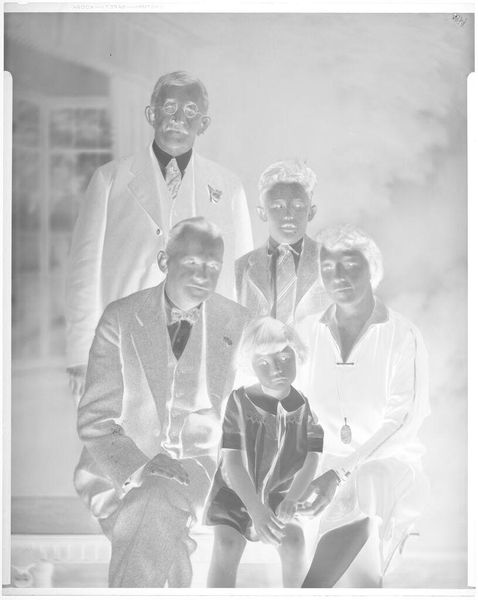 This photograph of a family in their living room was created by Paul Gittings at an unknown date. It portrays a carefully constructed image of domesticity. The subjects, dressed in their best attire, are arranged to convey a sense of unity and social standing. In the context of mid-20th century America, such portraits reflect a desire to project an ideal of family life. The formal attire and posed nature of the photograph suggest a family keen to present themselves in a particular light. The presence of a dog adds a touch of warmth to the otherwise formal composition. The picture hanging in the background, showing three women, suggests the importance of domesticity. Understanding this work requires us to investigate the social and cultural values of the time. Photographs like these serve as valuable resources for understanding the aspirations and self-perceptions of families in a particular era. They are a window into the social history of America, its ideals, and its values.