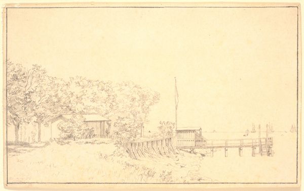 Curator: Let’s discuss P.C. Skovgaard’s pencil drawing, “En å med bro. I baggrunden en skov” from 1872. It’s currently held here at the Statens Museum for Kunst. Editor: Immediately, a sense of quietude strikes me. It's almost melancholic. The bridge seems to offer a passage, but to where? The blurred background makes me think of unfulfilled promises, and perhaps of nature in resistance. Curator: Skovgaard was deeply invested in depicting the Danish landscape as an emblem of national identity. Here, the river, bridge, and forest— rendered realistically through delicate pencil strokes—function as symbols of the Danish soul and its deep connection to nature. The symbolism evokes specific locations but transcends them, turning this intimate place into an everyplace of national Romanticism. Editor: But for whom was this nature accessible, really? Landscapes like this often mask complex relationships to the land and issues around property, control, and resource extraction. Who had access to cross this bridge, and who was excluded from the landscape, by this construction? It is never an idyll for everyone. Curator: Interesting. In Skovgaard’s time, the national Romantics yearned to define the "typical" Danish landscape to establish an imaginary national community. It’s likely he focused less on socioeconomic factors. Yet you’re right. This “typical” nature becomes a very curated experience with who’s considered “in” or “out”. The artist uses realism here to define and evoke that national essence. Editor: Perhaps the melancholy I sensed then arises from this imposed, and ultimately exclusionary, symbolic load. What initially seems like an innocent study bears, on closer examination, the marks of a nation in construction. It really causes reflection, in both senses. Curator: Precisely. This work prompts me to re-examine symbols of my own history and question the underlying narratives. What appears neutral often has an encoded system of rules defining the experience, as it can tell the truth, but not the entire truth. Editor: Definitely food for thought; and that's what makes revisiting history worth doing!