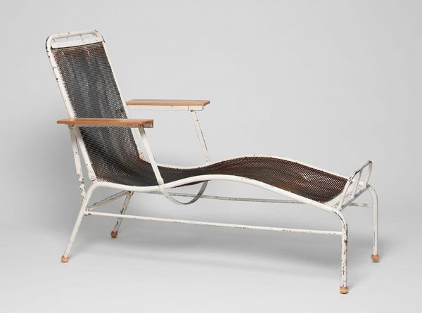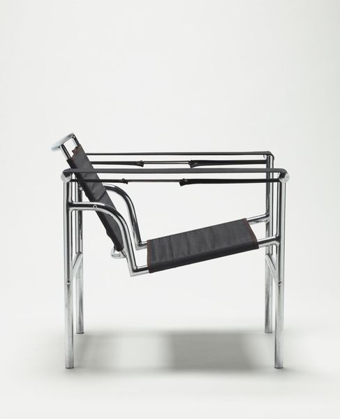 Editor: Here we have Ludwig Mies van der Rohe's "Armchair, Model No. MR20," residing here at the Harvard Art Museums. I’m struck by its stark simplicity. What visual language do you see at play here? Curator: The cantilevered design speaks of modernity's embrace of lightness and efficiency, evoking a sense of floating. The chrome frame, contrasted with wood and leather, recalls industrial progress, reflecting a desire to strip away ornamentation in favor of pure form. Editor: So, it's reflecting the times, moving towards functionality? Curator: Precisely. Van der Rohe presents us with more than just a seat; he gives us a symbol of a new era. Editor: I see that now, the materials are the message. Curator: Indeed, the "less is more" philosophy made manifest.