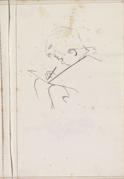 Isaac Israels drew this head of a woman in charcoal, probably in his sketchbook. It's a quick study, a process of feeling out form with a flurry of lines. Look at the way he builds up the shadow around the neck and jaw – it's almost like he's sculpting with the charcoal, letting the darkness define the shape. The lines are so active, they almost vibrate. It’s like he’s trying to capture not just what she looks like, but also a sense of her presence. The sketch feels very intimate, very immediate, like we’re catching a glimpse of Israels' thought process. The loose handling reminds me of Van Gogh's drawings, especially in the way both artists use line to convey emotion and movement. Both knew how to make a simple sketch feel incredibly alive. Ultimately, art is a conversation, isn’t it? A back-and-forth between artists across time.