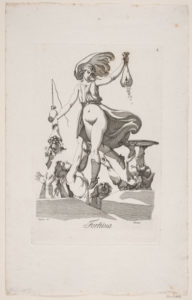 Pierre Alexandre Wille created this etching titled 'Amor of Apollo schietend met pijl en boog'. The eye is immediately drawn to the figure of Amor, poised and in motion, set against a muted backdrop. The composition reveals a careful study of form and balance. Notice the lines which define Amor's musculature, each stroke contributing to the overall sense of dynamism. His stance, with the bow drawn, suggests potential energy, a moment pregnant with possibility. Consider how the artist uses the classical figure of Amor not merely as a symbol but as a structural element. In this etching, the play of light and shadow, rendered through delicate lines, serves to highlight the formal qualities of the work.