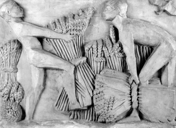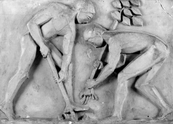 Editor: We are looking at Manolo's "Bullfight," a bronze relief from 1922. It's surprisingly static for such a dynamic subject; I expected more drama! What strikes you most about this work? Curator: What strikes me is the choice of bronze. It elevates a popular spectacle, bullfighting, into something…historical, monumental almost. Consider the labor involved: the mining of the ore, the casting process, the finishing. What was Manolo trying to say by imbuing this scene with that weight? Editor: That's interesting. I hadn't thought about the process so much, just the image. Did the use of bronze make bullfighting seem more "acceptable" to a high-art audience? Curator: Precisely! Bronze has a specific cultural weight tied to tradition and permanence. Was Manolo complicit in glorifying this controversial "sport," or was he critiquing its cultural status by framing it within this high-art material? Think also about consumption: Who would purchase this relief? How would they display it and what statement does that makes? Editor: So you are asking what power structures are implied through the work, by glorifying what otherwise can be seen as inhumane? Curator: Exactly. What social narratives are built around it? It’s not just about the aesthetic appeal, but about labor, materials, access and underlying societal constructs that make an artwork "art". Editor: That definitely gives me a different perspective, thinking about the bronze not just as material but as a loaded choice, related to social class and ethical discussions. Thank you for the analysis! Curator: Likewise! The surface appearance deceives because materiality itself carries a history that is anything but still.