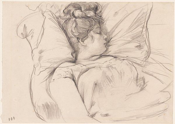 Andre Dunoyer de Segonzac’s "Nude on a Bed" offers a glimpse into the artist’s world, situated in a time when the female nude was a contested space between objectification and artistic expression. Born in 1884, Segonzac lived through significant shifts in artistic and social norms that influenced his work. Here, the female figure, rendered in delicate washes, lies on a bed, her gaze meeting ours with a sense of quiet self-possession. The drawing style, with its loose lines, avoids idealization, instead capturing the natural contours of the human form. How might the artist's intentions of this composition reflect or challenge the traditional male gaze? Segonzac’s choice to portray the nude in a domestic setting invites us to consider the complexities of intimacy and identity. The work exists not just as a representation of a body, but as an exploration of the relationship between artist, subject, and viewer, prompting us to reflect on our own perspectives.