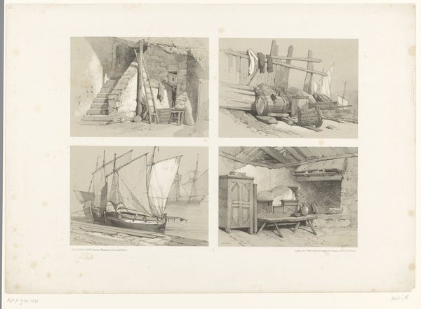 Cornelis Meijer created this print, "Four Depictions of Ships and Hydraulic Installations," sometime in the late 17th century. The image offers a fascinating glimpse into the technologies that shaped Dutch maritime power during its Golden Age. Look closely, and you’ll see a variety of ship designs and engineering solutions for navigating and controlling water. The detailed rendering suggests an artist with technical knowledge, perhaps even an engineer himself. Made in the Netherlands, then a global leader in shipping and trade, it speaks volumes about the Dutch Republic’s innovative spirit and its dependence on maritime expertise. What does this image tell us about Dutch society? The mastery of shipbuilding and water management was central to their economic and political power. These weren't just practical illustrations; they were visual statements about Dutch ingenuity and their ability to engineer their environment. Historians can study these images alongside shipping records, engineering drawings, and economic data to paint a richer picture of the Dutch Golden Age and its lasting impact on global trade and technology.