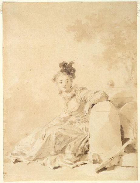 Editor: This is a print entitled "Portret van Maria Cosway," likely from 1785, by Francesco Bartolozzi. It's got this delicate, almost dreamy quality about it...a stillness that's quite captivating. What captures your attention most when you look at this portrait? Curator: Ah, Maria Cosway! She’s more than just a pretty face under that feathery hat, you know. The delicacy you mention – it’s a hallmark of Bartolozzi's engraving style, of course, mimicking the soft lines of a drawing. But what sings to me is the *suggestion* of a story. Look how she’s posed – relaxed, but poised, almost like a character paused between scenes in a play. Don't you feel like there’s an entire world of salon gatherings and whispered secrets just outside the frame? Editor: Absolutely! I feel that "suggestion of a story" - maybe because of the book laying open beside her. Do you think the open book is significant? Is it meant to tell us something specific about her? Curator: Perhaps. Back then, depicting someone with a book signalled intellect and refinement. Think of it as the 18th-century equivalent of flashing your PhD! But, playfully, maybe she just wanted to show off her library. Do you think she really loves to read, or she just wants you to *think* she loves to read? Editor: That's a good point! The pose does seem a little too perfect. I hadn't considered that. Curator: Portraits were strategic then. She’s creating a version of herself for the world – a very curated self, if I may. Editor: That makes me rethink the entire image! It is staged to perfection. Thank you for sharing these illuminating insights. Curator: The pleasure is mine. Sometimes the most beautiful lies are the ones etched in ink. Now, if only *my* portrait could be so flattering…