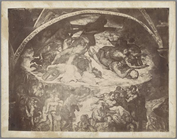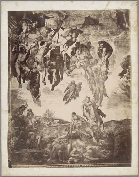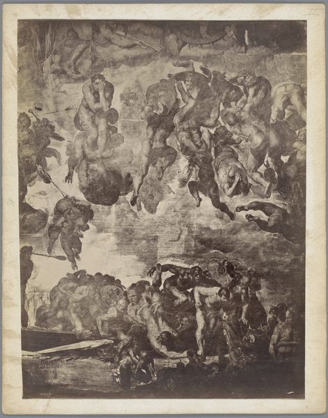 This is an undated photographic reproduction of a section of Michelangelo’s frescoes in the Sistine Chapel, showing Christ and Mary. Painted in the early 16th century, Michelangelo's work was a cornerstone of the High Renaissance, commissioned by the Catholic Church during a period of immense religious and artistic transformation. Michelangelo, influenced by classical sculpture, transformed religious figures into powerful, idealized forms, each muscle meticulously defined. But in doing so, he was also challenging the traditional, more demure representations of religious figures. The fresco, in its depiction of divine judgment, also hints at the socio-political climate of the time, marked by religious reform and conflict. "A man paints with his brains and not with his hands," Michelangelo once said, highlighting the intellectual rigor he applied to his art. The image captures the emotional intensity of faith, inviting contemplation on power, judgment, and the human condition.