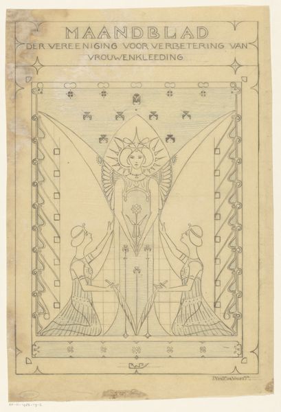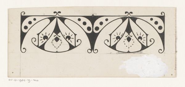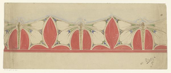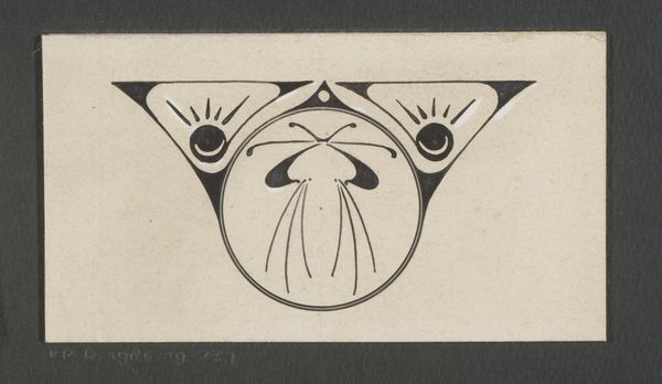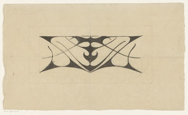 Editor: Here we have Reinier Willem Petrus de Vries’s "Design for a Quadrangular Ornament with a Capital W and Crown," made before 1898, employing watercolor and drawing techniques. I’m really drawn to the muted palette and the somewhat regal yet slightly unsettling imagery. What’s your take on this piece? Curator: This watercolor offers an intriguing glimpse into the world of decorative arts and Art Nouveau, a movement deeply embedded in its socio-political context. Note the prominent "W" crowned at its apex – a clear marker of power and possibly patriotism depending on whose W it symbolizes. Consider, for whom would an artist design such an emblem? Editor: Perhaps it was commissioned for a wealthy patron with a "W" in their name, like a personalized crest? Curator: Exactly. Now, think about the political climate in Europe at the time. Monarchy was waning, and there were nascent democratic ideals bubbling to the surface. Art Nouveau often sought to democratize aesthetics by bringing art into everyday life through decorative objects. Do you see a contradiction in creating a heraldic emblem in a movement that challenged aristocracy? Editor: I see what you mean. It’s as if the artist is grappling with tradition and progress, offering a symbol of power while simultaneously embracing a modern style that challenged the old guard. It could be about using design to re-imagine power itself. Curator: Precisely. De Vries' design becomes a site where societal tensions between tradition and modernity, power and accessibility, play out. It encourages us to consider the complexities of identity and representation within art. Editor: That really opens up my eyes to how art can mirror and shape the social conversations happening at the time. Thanks for sharing your insights!