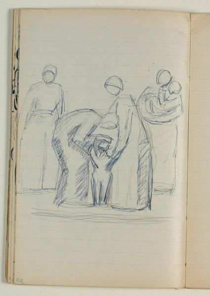 This sketch, "Udkast til 'Kristus velsigner de små børn'," by Niels Larsen Stevns, presents a raw and immediate visual experience, characterized by its stark lines and the almost palpable texture of the paper. The composition is striking for its use of dense hatching to define form and space. The figures emerge from a background of energetic lines, giving the scene a sense of dynamic movement. Note how Stevns uses line to delineate the figures, focusing on their gestural presence rather than detailed representation. The artist creates a sense of depth and volume through variations in line weight and density. The sketch invites us to consider the role of the unfinished in art. It emphasizes process over product. It is a study in progress that allows for multiple readings and interpretations. This unfinished quality becomes a powerful form of expression, challenging fixed meanings. It allows us to explore the very act of creation and the instability of meaning itself.