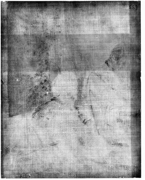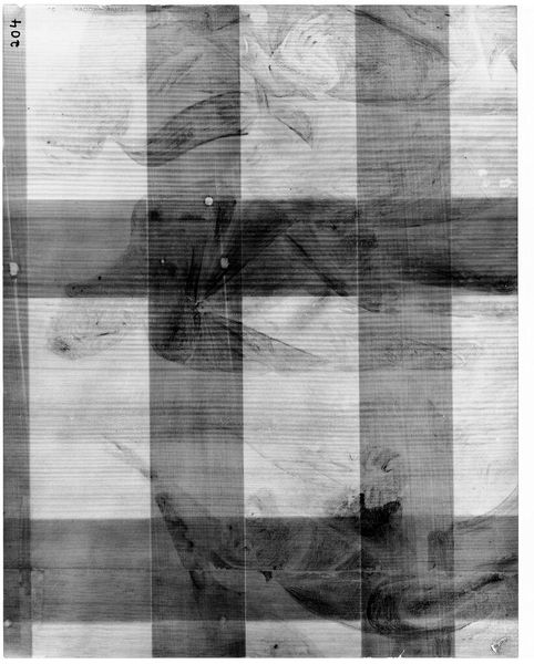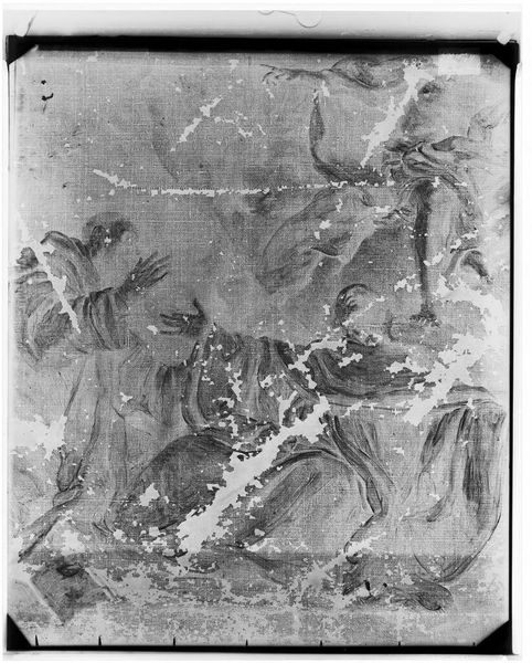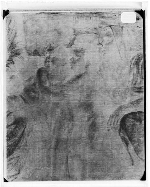 Curator: This is an X-radiograph of "Children Playing at the Tuileries," originally by Édouard Manet, now residing at the Harvard Art Museums. Editor: It feels like a ghostly snapshot. All the hidden layers and pentimenti are laid bare. Curator: Precisely. The radiographic process reveals subsurface details, giving us insights into Manet's compositional process. We can examine the artist's underlying structure and choices. Editor: It's like seeing the painting's bones. You get a feel for the evolution of the composition. What was changed or discarded. I think it adds another layer of intimacy, somehow. Curator: Indeed. It disrupts our typical reading of the surface, drawing attention to the material objecthood and the artist's hand in its making. Editor: I love the idea that technology lets us see the past lives embedded within a single work. Curator: An apt description; the image transforms Manet's painting into a visual palimpsest.