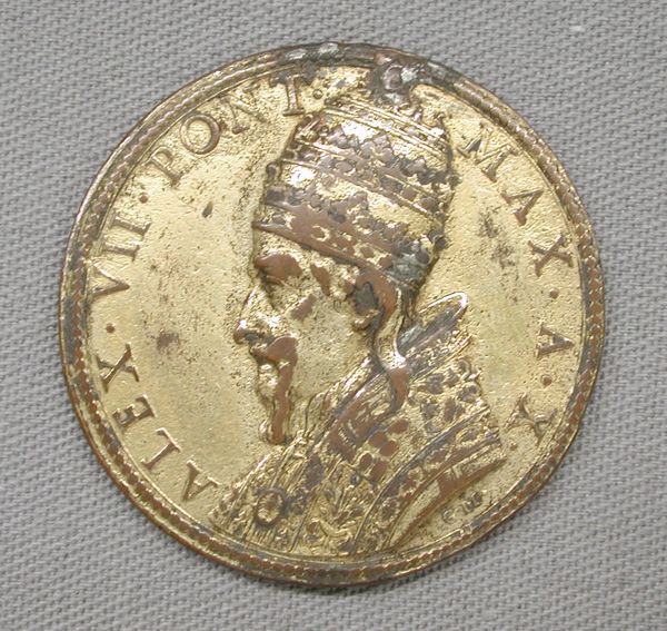 This bronze medal of Pope Paul II was made in Rome by Cristoforo di Geremia, sometime around 1470. Di Geremia was among the first artists to revive the ancient Roman tradition of portrait medals. These weren’t simply struck like coinage, but individually cast using the lost wax method. This involved carving a detailed wax model, encasing it in clay, melting out the wax, and pouring in molten bronze. This was a laborious process that involved several stages. The final medal therefore captures an extraordinary amount of detail, from the Pope’s features to the intricate ornamentation of his robes. This kind of detailed work, combined with the relative preciousness of bronze as a material, meant that these medals were relatively high status objects. They circulated among a wealthy elite, who would have understood the classical references and appreciated the skills involved in the making. The medal's form and material speak to a potent combination of artistic ambition, skilled labor, and social positioning.