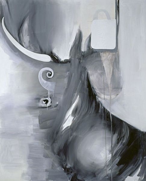 Blek le Rat's "Subliminal Projects," presents a striking stencil of a sheep set against a textured background of blended earth tones punctuated by vivid blue. This contrast immediately draws the eye, creating a dynamic visual tension. Le Rat, a pioneer in stencil graffiti, elevates the mundane to the monumental. The sheep, rendered in stark black and white, is both familiar and anonymous, its identity obscured by the medium. The stencil technique flattens the image, reducing depth and emphasizing the graphic quality of the form. This deliberate simplification prompts us to consider the sheep not as an individual creature but as a sign. Here, the animal becomes a vessel for cultural meanings and interpretations. Does the sheep signify innocence, conformity, or perhaps something more subversive? The title, "Subliminal Projects," suggests hidden messages embedded within the image. The artwork invites us to decode these layers, pushing beyond the surface to engage with the broader social and political contexts that inform Le Rat's practice.