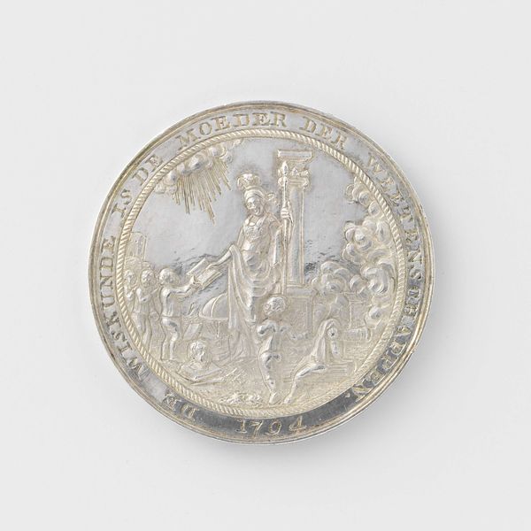 This medal was made by Friedrich Hagenauer in the early 16th century. This small, circular artwork is dominated by a central figure on a mythical beast, encircled by text. The composition is dense, with intricate details rendered in relief. Hagenauer's choice of a circular format invites consideration of Renaissance ideals of harmony and perfection. The figure with the sword alludes to power and justice, possibly as a commentary on contemporary political structures. The surrounding inscription can be understood through semiotics, where each letter acts as a sign that contributes to the overall message. The visual elements create a symbolic language that likely resonated with cultural codes and values of the time. Note the medal’s form as a portable object and its function as a carrier of meaning. This piece encourages us to reconsider how art engages with perception, power and representation in early modern Europe.
