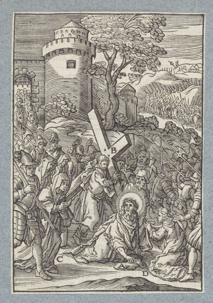 This is a woodcut of ‘The Entry into Jerusalem,’ made by Christoffel van Sichem II, sometime before his death in 1658. The process of woodcutting involves carefully carving an image into a block of wood, then applying ink to the raised surface and pressing it onto paper. Look closely, and you'll see how the artist has used bold, graphic lines to create a sense of depth and movement. The stark contrast between black and white gives the scene a dramatic quality. Woodcuts like this were relatively inexpensive to produce, and could be printed in large numbers. They made art accessible to a wider audience, who were increasingly literate. The imagery reflects the society of the time, where religion played a central role in people's lives. The image is a testament to the enduring power of simple materials, skillful making, and accessible communication. It prompts us to reconsider the boundaries of art history.