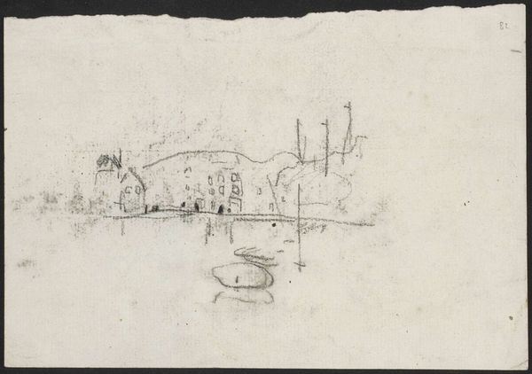 Curator: This subtle pencil drawing by Ditlev Blunck, dating from between 1798 and 1854, offers us a rooftop vista titled "View Over the Roofs of Rome with the Church of San Andrea delle Fratte." Editor: It possesses a delicate quality, almost ethereal. The light seems to diffuse, softening the hard edges of the architecture. One can feel the weight of history just in its gentle atmospheric perspective, with the composition’s simple lines. Curator: Indeed. Considering the period, such landscapes held cultural value. The city of Rome represented a seat of power. Artists and intellectuals gathered there to explore humanistic traditions and grand architecture. A depiction like this aligns with the Romantic and Realist movements emerging at the time. Blunck engages not in heroic portrayals of Rome's elite, but of its architectural fabric and layout. Editor: And, focusing on purely formal aspects, one has to admire Blunck’s precise layering and the intricate detailing within the seemingly simple sketch. He establishes depth through very delicate shading and creates a play with various angular geometric forms and textures. He directs the eye towards the Church, an intentional pivot that contrasts beautifully with the rough texture of the roof tiles. Curator: Precisely. It gives us a peek into the urban planning, even a proto-photographic capture of a streetscape that diverges from, say, a Renaissance approach that might emphasize symbolic grandeur. You can infer elements about daily life; where the inhabitants live. Editor: It brings to question the very notion of landscape art at this time, then, too. If this cityscape is also meant to serve as an expression of history, of realism, then what meaning did it convey? For whom was it made? What specific statements can this artwork convey on an economic, class, and power relation at this time? It’s as if the artist is allowing the architecture to speak, silently witnessing the passage of time. Curator: Exactly. Viewing it this way certainly helps in reading it from the perspective of our current historical context and it truly enriches our understanding. Editor: A worthwhile point. I must admit, observing its visual rhythm and soft, diffused values creates a meditative experience as well.