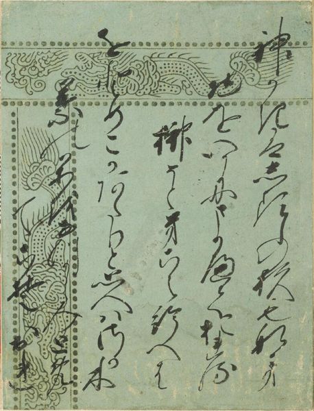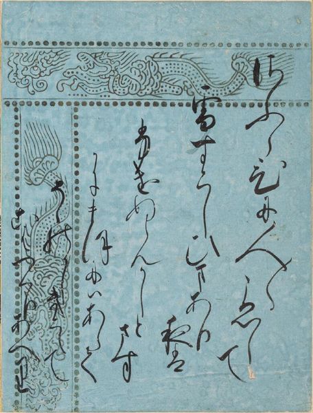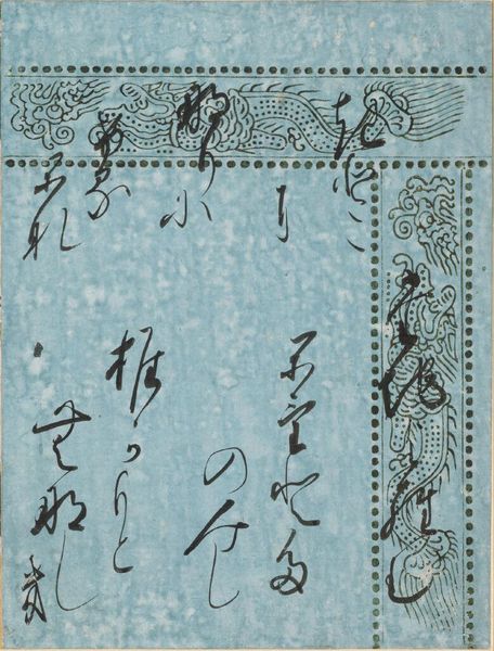 Editor: This is a page of calligraphy, "Beneath the Autumn Leaves," an excerpt from The Tale of Genji, by Fushimi no miya Kunitaka shinnō. The brushstrokes feel so fluid, almost like water. What do you make of it? Curator: It’s funny you say that; the characters dance like leaves swirling in a stream, don’t they? Calligraphy is more than just writing; it's the artist's breath made visible, their spirit taking form. Can you see the echoes of Genji's melancholy here, the ephemeral beauty? Editor: I think so! It's like the transience of autumn captured in ink. Curator: Exactly! A reminder that even beauty is fleeting, and maybe that's what makes it so precious. I wonder, what stories would it tell if it could speak?