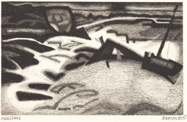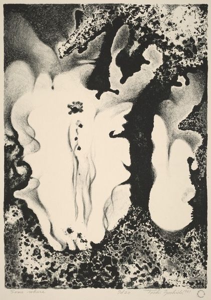 Editor: This intriguing print is titled *Canto XXVII*, by Esq Tom Phillips. The layering and collage elements create a rather fragmented feel. What stands out to you in terms of its formal qualities? Curator: The dynamism of the lines is immediately striking. Note how the artist employs contrasting textures – the dense cross-hatching versus the smoother planes. Consider the role of the text; it acts as both image and content, disrupting the visual field. Editor: The way text becomes image is compelling. It almost seems like another layer of texture. Curator: Precisely. The interplay between textual and purely visual elements invites us to decode the artist's semiotic system. How do the formal elements contribute to an overall unity or fragmentation? Editor: I see how the contrasting textures create visual interest, and how the text introduces another layer of complexity, but it also feels disjointed. Curator: Perhaps, but that very disjunction is integral to its aesthetic impact. The fragmentation becomes a unifying principle in itself, prompting a re-evaluation of how we perceive coherence in art. Editor: I hadn't thought about the fragmentation as a conscious choice. Thanks!