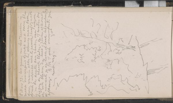 Johannes Tavenraat made this landscape drawing near Kralingen in 1875, likely *en plein air*, with graphite on paper. The thin, wiry quality of the graphite suggests that Tavenraat used a hard pencil, allowing him to capture the scene with precision and clarity. The quick, light marks capture the essence of the Dutch landscape, with its flat terrain, windmills, and expansive sky. The softness of the graphite allows for subtle gradations of tone, creating a sense of depth and atmosphere. Drawings like this were often made in preparation for larger paintings. The material allows for quick studies, with the artist able to record fleeting moments and details, giving the work a sense of immediacy and intimacy. The work offers a glimpse into the artist's process and the importance of drawing as a fundamental skill, one that has always blurred the lines between craft and fine art.