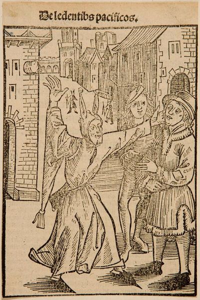 Curator: Here we have an illustration from Brant's "Navis Stultifera," or "Ship of Fools," an anonymous work residing in the Harvard Art Museums. What's your initial take? Editor: Well, chaos! A jumble of crowned heads and jesters… I feel like I've stumbled into a very strange party. Curator: Indeed! This satire critiques societal folly. Note how fools adore their own jester hats, blind to the true wisdom. Editor: It’s wonderfully absurd. The way they’re all crammed together, vying for attention, really captures the feeling of a world turned upside down. Curator: Precisely. It speaks to the universal human tendency toward self-deception and the dangers of vanity, themes relevant even today. Editor: It's unsettling how timeless foolishness is! Makes you think about our own absurdities.