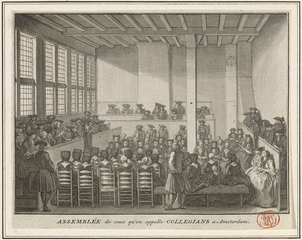 This print, depicting the ratification of the Peace of Munster in 1648, was made by an anonymous artist using an engraving technique. Lines are incised into a metal plate, traditionally copper, using a tool called a burin. Ink is then applied to the plate, filling the lines, and the surface is wiped clean. When paper is pressed against the plate, the ink transfers, creating a detailed image. The engraver’s skill is evident in the precise lines and textures, capturing the scene’s formality and the characters' clothing. Engraving has a rich history, employed for centuries to reproduce images and disseminate information. It was a labor-intensive process, requiring skilled artisans and specialized tools, reflective of the economic and social structures of the time. The medium's capacity to disseminate information made prints like this a means of shaping public perception of events and solidifying political narratives. Paying attention to materials, processes, and their social context allows us to appreciate the full meaning of this print.